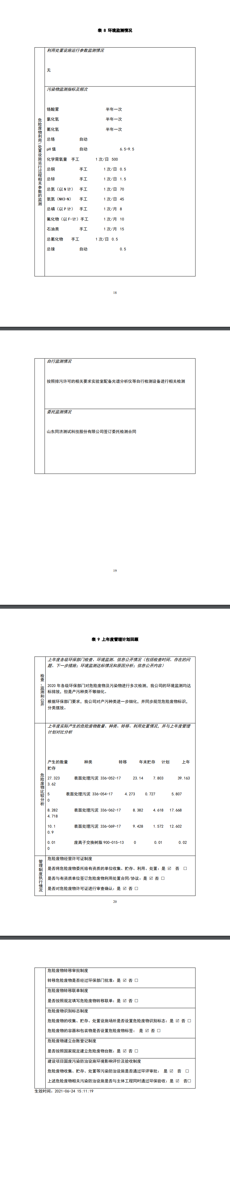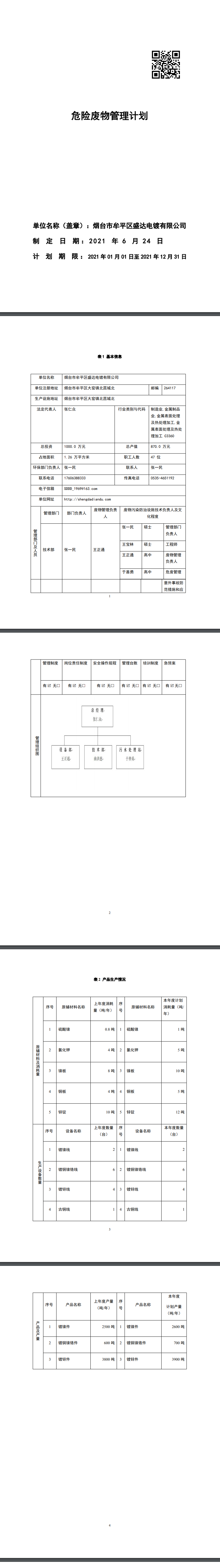 煙臺市牟平區盛達電鍍有限公司《危險廢物管理計劃》